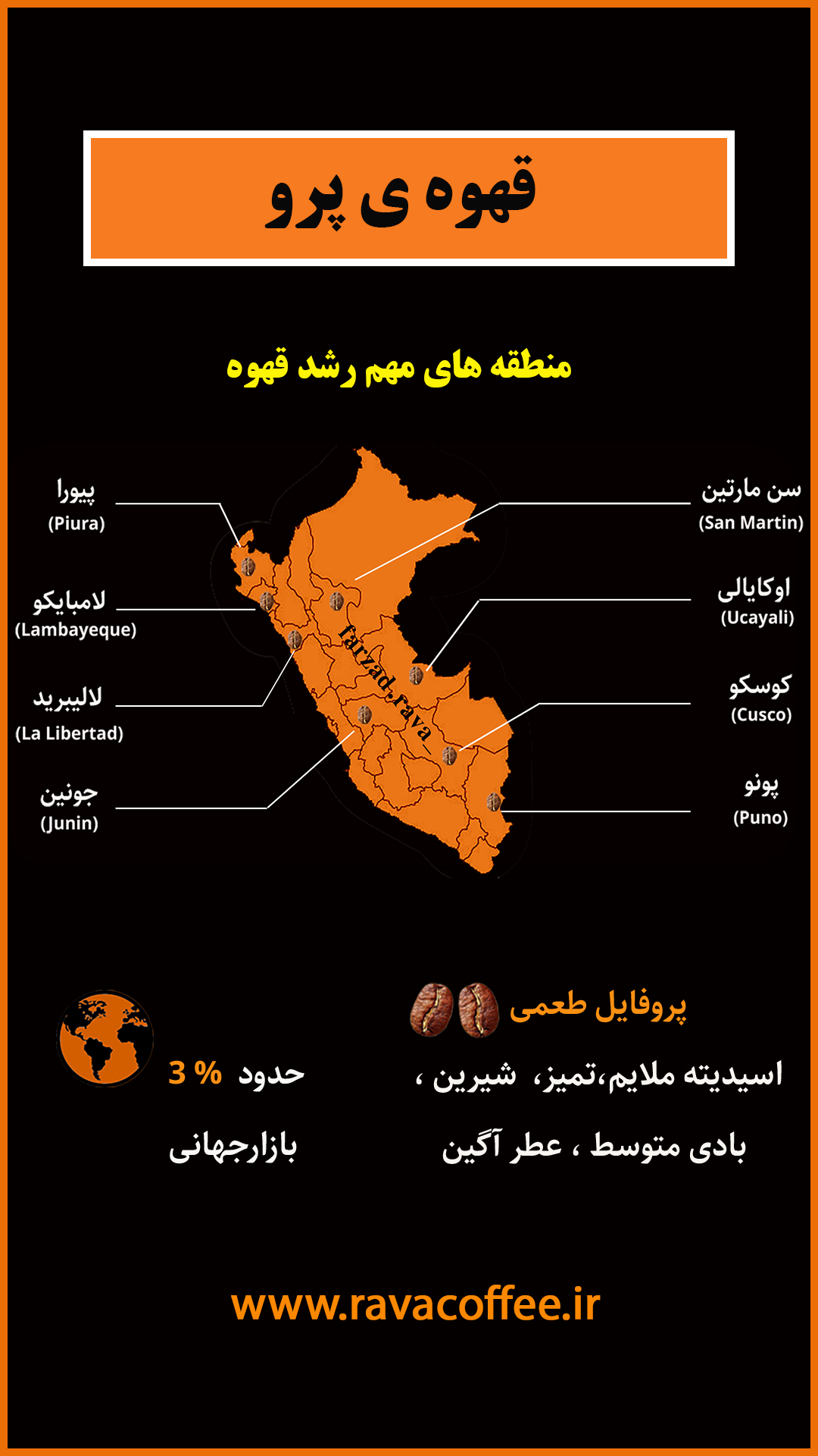🔰#قهوه_پرو در بازار قهوه ایران به اندازه کشور های همسایه اش مثل کلمبیا و برزیل طرفدار ندارد ، هر چند که طعم مطلوب و کیفیت خوبی دارد